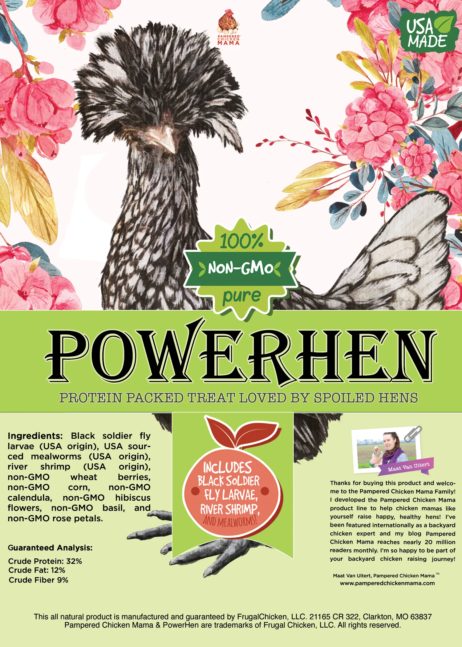 PowerHen (TM) High Protein Treat With Mealworms, Black Soldier Fly Larvae, & Herbs For Backyard Chickens