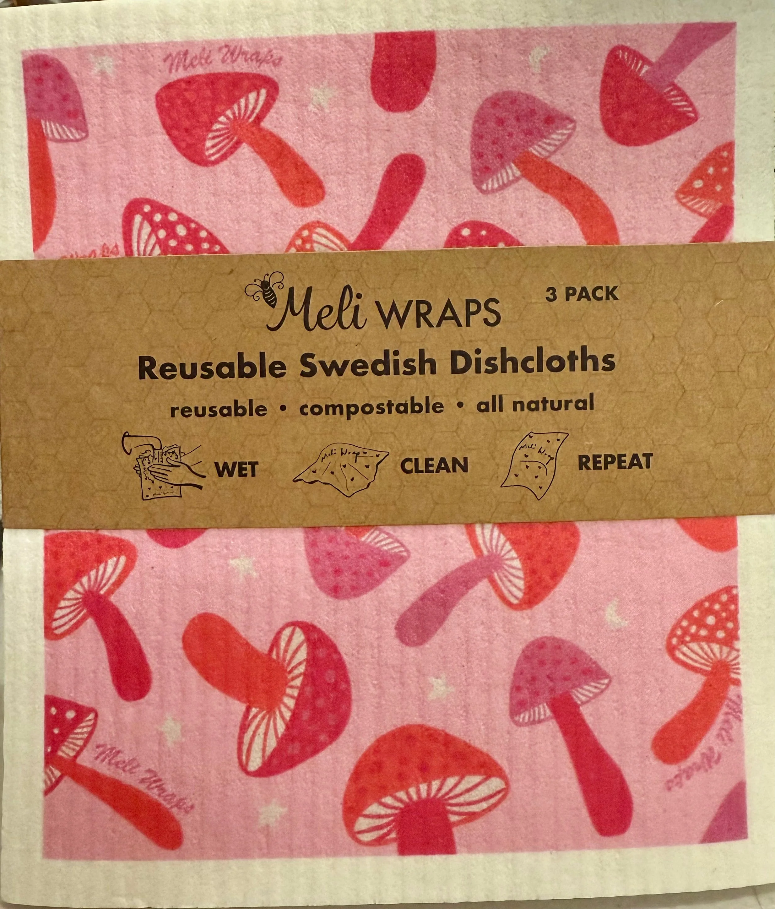 Pink Mushroom Swedish Dish Cloth Set of 3