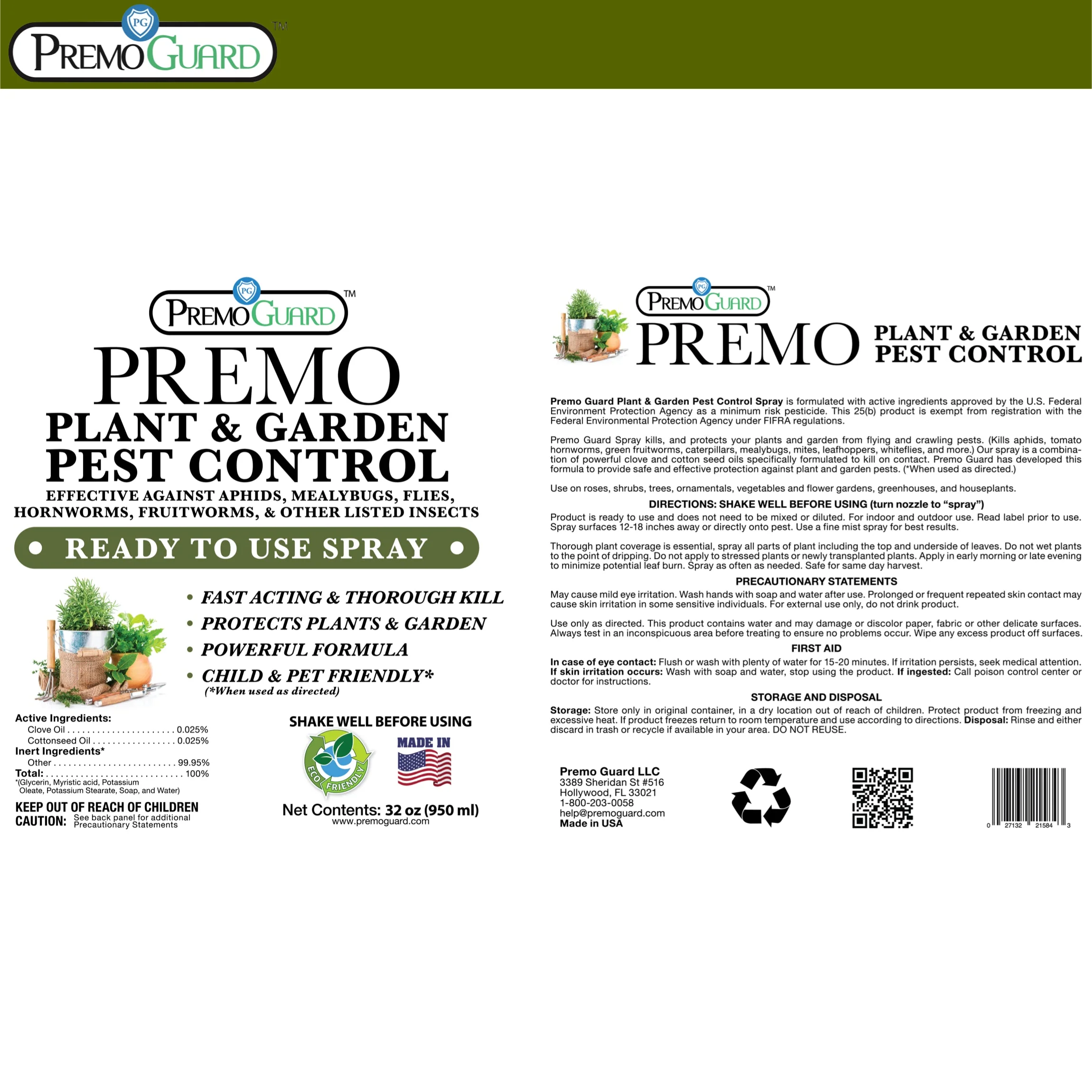 Plant and Garden Pest Control Spray - 32 oz - By Premo Guard