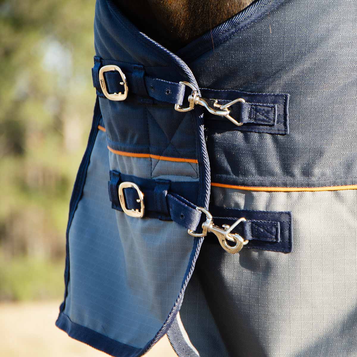 Economy Plus 1200 Denier Turnout Blanket with Standard Neck, 240 Gram, Navy & Gray